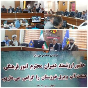شایان ذکر است رئیس شورای فرهنگی شرکت بهرهبرداری از شبکههای آبیاری کرخه و شاوور نیز در این جلسه حضور داشت و گزارشی از فعالیتهای فرهنگی و دینی شرکت در نیمه نخست سال به صورت مکتوب و مصور به رئیس شورای انسجام بخشی صنعت آب وبرق خوزستان ارائه کرد.